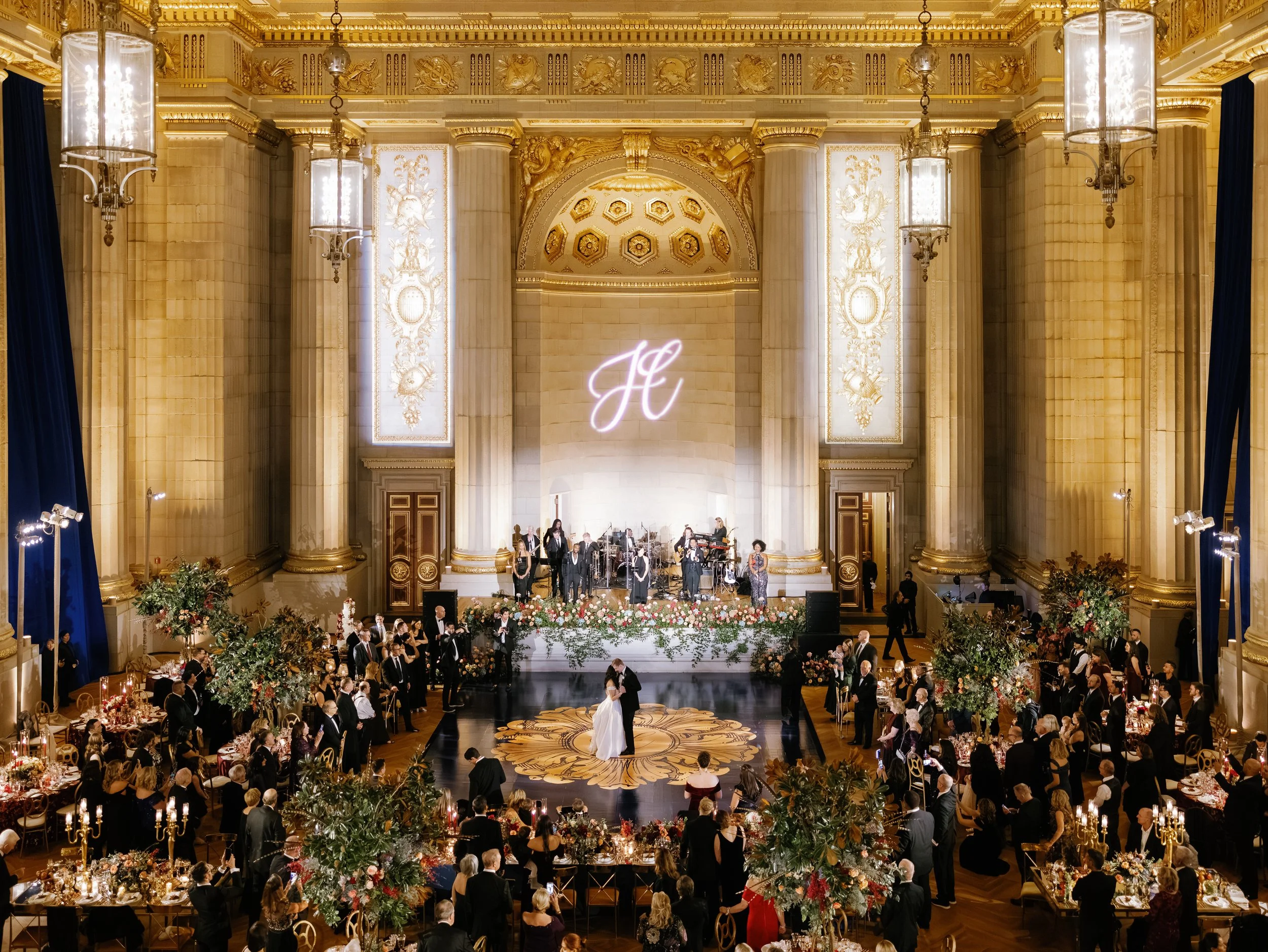 Cara and Jake’s destination wedding in Washington, D.C. was the epitome of elegance and grandeur, set against the stunning backdrop of one of the city’s most majestic venues. From the moment guests arrived, they were welcomed into a day filled with heartfelt moments and timeless sophistication. The ceremony, held in a richly adorned cathedral, echoed with tradition and reverence, as the couple exchanged vows surrounded by family and friends. Cara looked radiant in her classic gown, complemented by her bridesmaids in deep burgundy velvet, while Jake and his groomsmen exuded classic charm in black tie. The reception was nothing short of spectacular, tables adorned with lush florals, fruits, and candlelight filled a soaring ballroom where golden accents and custom monograms set the stage for a lavish celebration. From a towering cake detailed with florals and gold embellishments to the joyful first dance under cascading chandeliers, every detail spoke to the couple’s refined taste and joyful love story. This wedding was a breathtaking blend of old-world romance and modern luxury, perfectly capturing the essence of Cara and Jake.